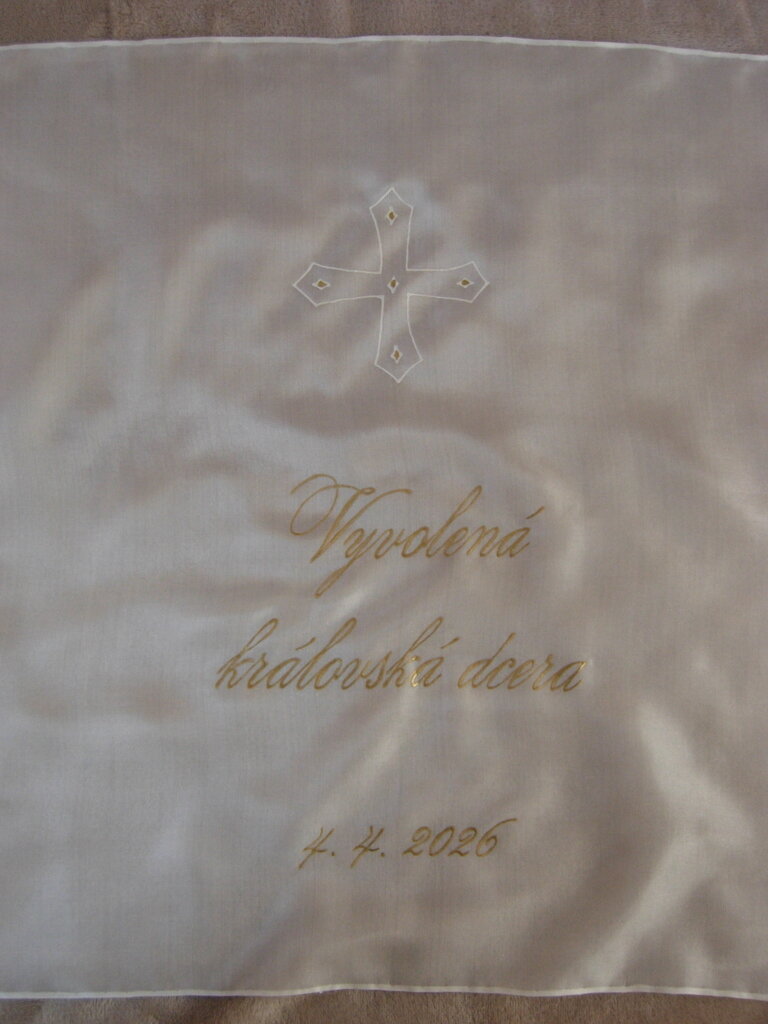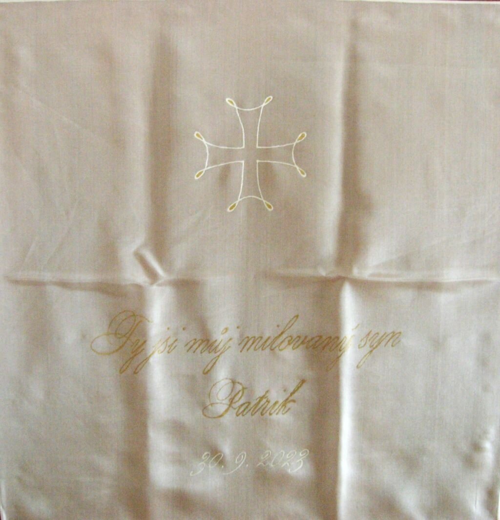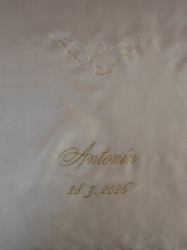 Zvolený motiv kříže nebo holubice, barevnost kresby, znění nápisu uveďte